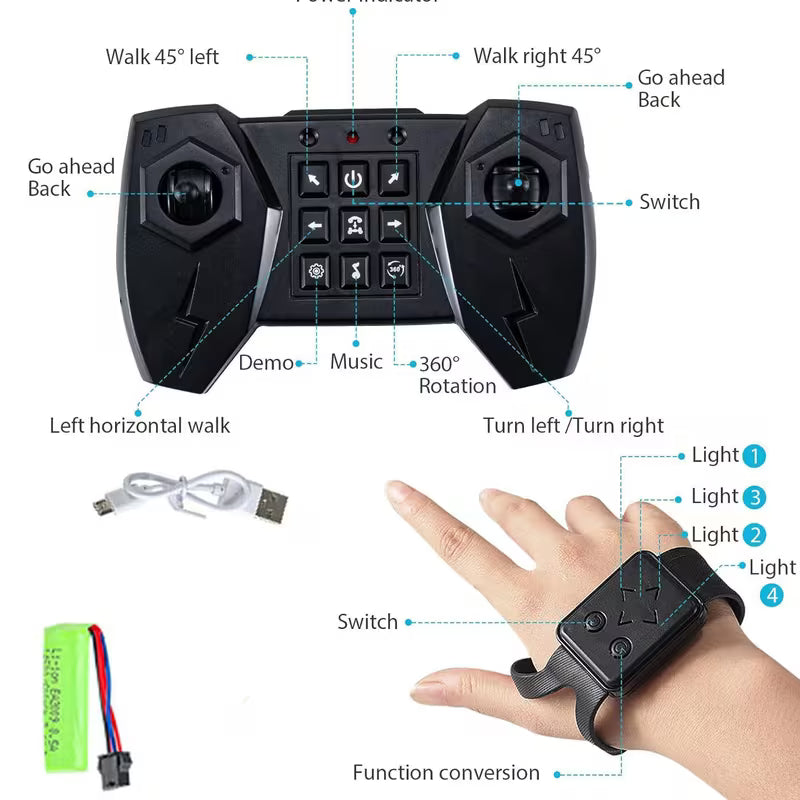 With **two control modes—traditional remote and gesture-sensor wrist control—**kids can drive, flip, and spin the truck with simple hand movements, making playtime even more exciting and interactive. Perfect for birthdays, Christmas, and any special occasion for kids ages 4 to 12.