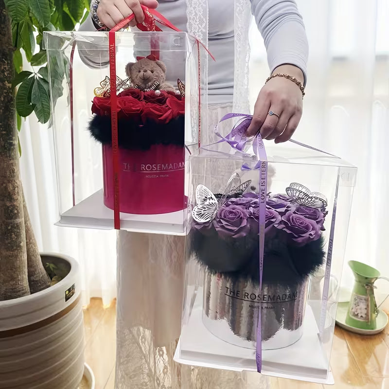 Add timeless elegance with this realistic artificial rose bouquet in a cake-shaped plastic vase, accented by a delicate butterfly. Perfect as a wedding, anniversary, or Valentine’s Day gift, it also makes a charming centerpiece for Christmas, graduation, or any special occasion. Durable and maintenance-free, it brings lasting beauty to any space.