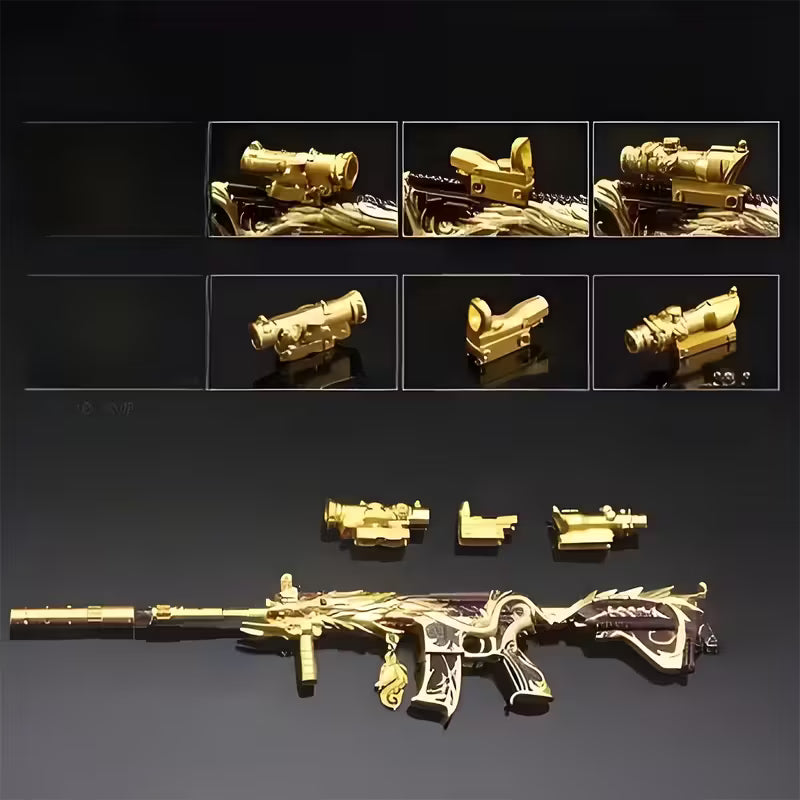 Impress collectors with this deluxe M416 metal rifle set, featuring a 9.45" golden/silvery rifle, dagger, and elegant display stand. Perfect for military enthusiasts and a standout piece for any living room or office