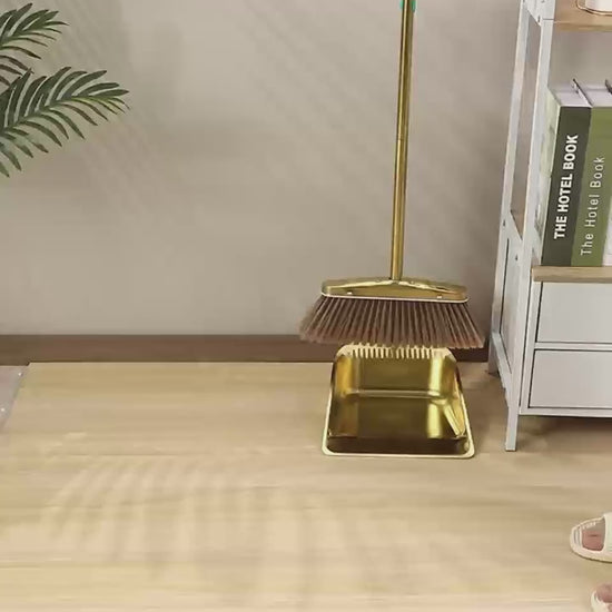 Golden Stainless Steel Broom & Dustpan Set – Upright Design with Hair Removal Feature