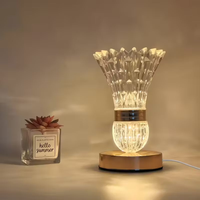 Modern Crystal Vase Table Lamp – Adjustable Warm Light, USB Plug-In Decor